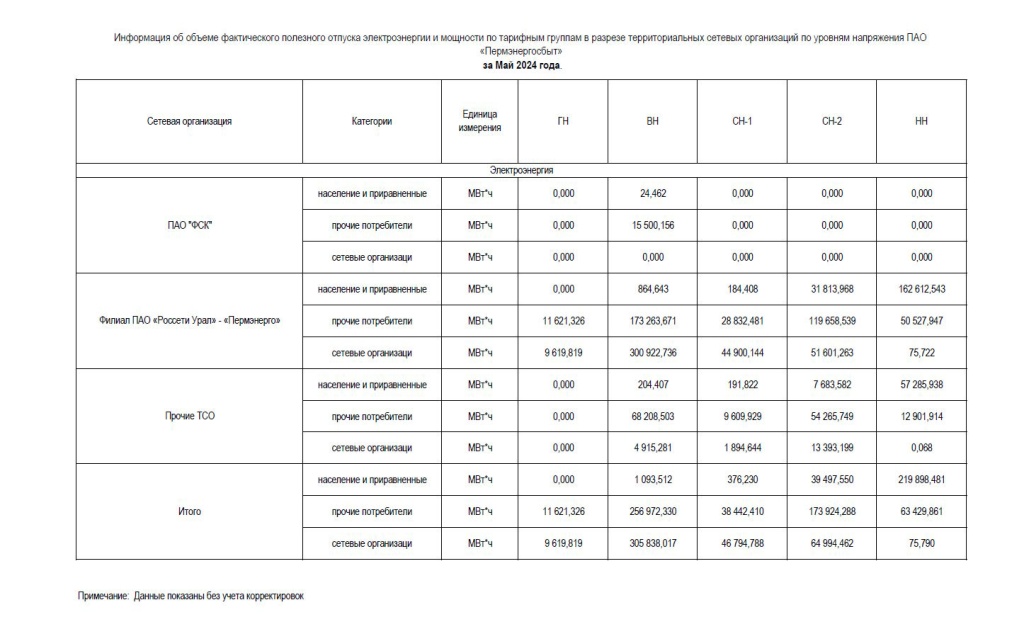 ПЭСК: информация об объеме полезного отпуска по ТСО за май 2024 года