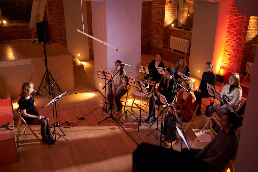 В книжном магазине «Пиотровский» состоялась запись перформативного подкаста «В тишине», где режиссёр Дарина Чиркова, этновокалистка Дарья Калина и музыковед Мария Невидимова вместе со зрителями обсуждали, как создавать новое искусство, опираясь на традиции малых народов. «Современное искусство становится местом встречи — там, где можно говорить на исчезающих языках, чтобы они продолжали жить. Наш театр о любви — к человеку, дому, корням, языку, памяти», — говорит Дарина Чиркова, режиссёр и драматург театральной компании «НМХТ». Аудио будет доступно на Яндекс.Подкаст.