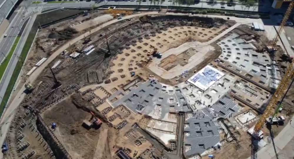 В Перми подрядчик завершает подготовку фундамента для новой спортивной арены около ДКЖ. К конце мая забито около 2,2 тысяч свай. Через месяц начнётся строительство каркаса первого этажа.
