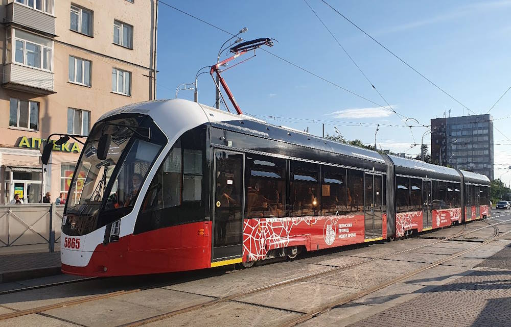 В Екатеринбурге началась обкатка новейшего пятисекционного трамвая 71-665 «80 лет Победы» от Усть-Катавского вагоностроительного завода. Этот трамвай способен перевозить до 406 пассажиров, что на 24 человека больше, чем у пермского трехсекционного трамвая «Лев», который ранее считался самым вместительным в стране, - сообщает