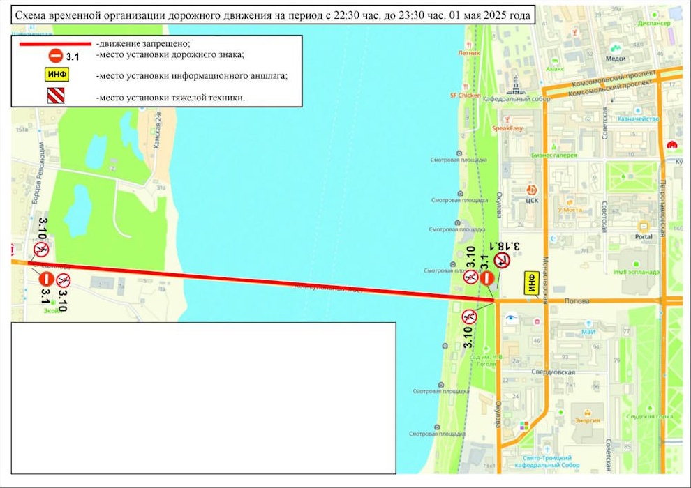 Вечером 1 мая в Перми на час перекроют движение по Коммунальному мосту через Каму. С 22:30 до 23:30 мост будет закрыт и для транспорта, и для пешеходов. Это связано с требованиями по обеспечению безопасности при проведении праздничного салюта.