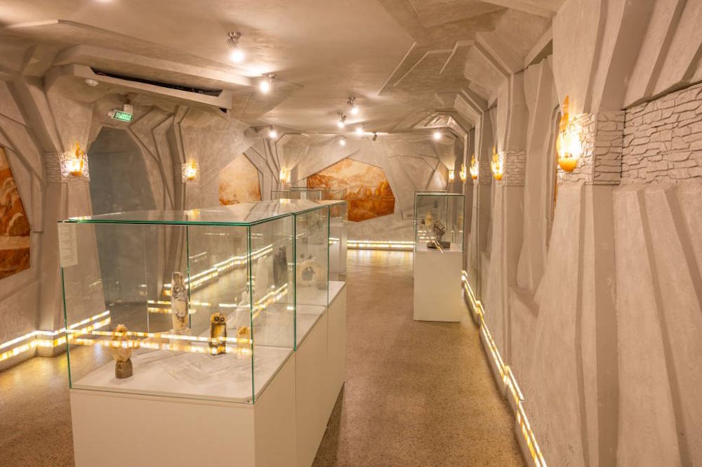«Селенитовая комната» создавалась как первая и единственная в мире. Музейный объект представляет собой искусственный грот, на стенах которого размещены декоративные панно и витражи из селенита 20 различных оттенков - пейзажи, достопримечательности, узнаваемые места Пермского края. Панно выполнены в авторской мозаичной технике, основанной на принципах флорентийской мозаики, когда изображение складывается из небольших фрагментов камня, вырезанных по рисунку.