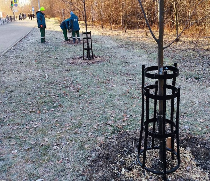 В Перми решили продолжить эксперимент по защите зеленых насаждений от снегоуборочной техники с помощью ограждений. Впервые такие металлические ограждения и сетки были опробованы в Перми в прошлом году. В этом году «Горзеленстрой» вновь начал устанавливать металлические ограждения к молодым саженцам. Работы проводятся там, где газоны узкие и есть потенциальная возможность повреждения при неаккуратной работе снегоуборочной техники. Такой способ позволяет защитить дерево, его стволовую и корневую системы во время уборки снега.