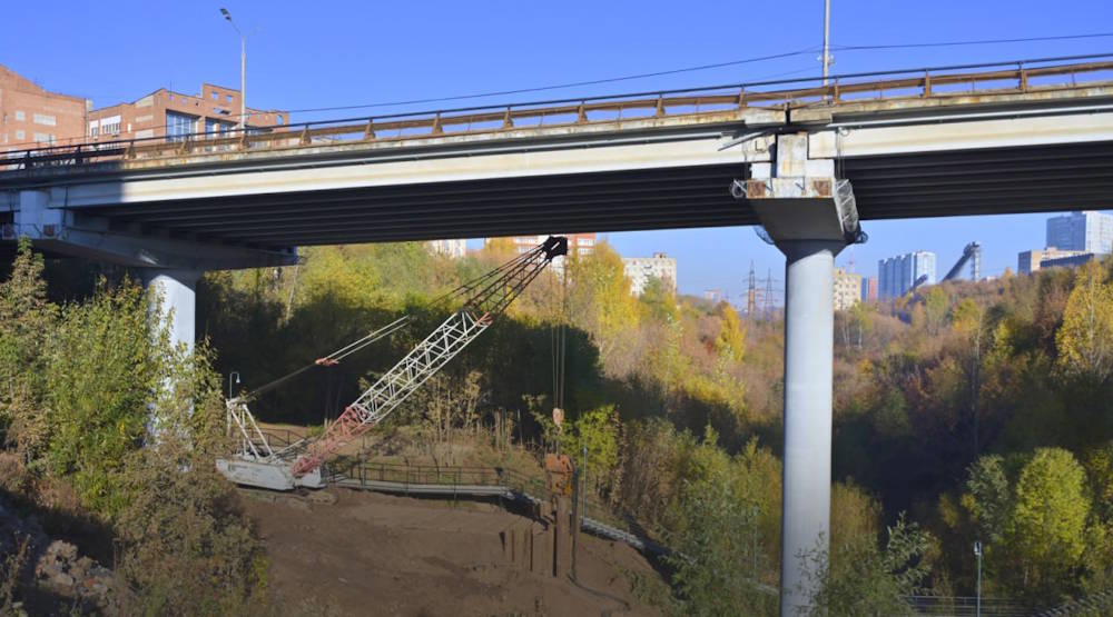 В Перми началась установка свай для второй половины моста через Егошиху. Глубина установки свай - 33 метра. Всего для нового моста будут построены девять опор.