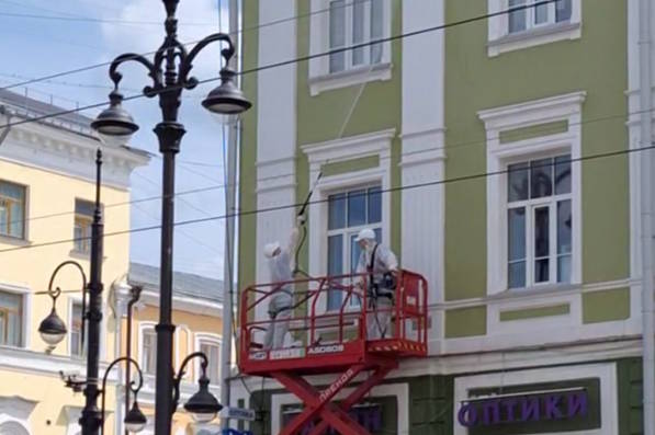 В центре Перми до конца июня вымоют фасады административных зданий. Раньше владельцы зданий были обязаны убирать только граффити, но с этого года Правила благоустройства требуют очищать фасады от пыли и грязи.