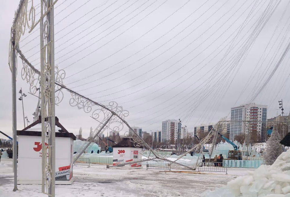 При строительстве ледового городка на эспланаде Перми был частично поврежден купол ёлки. Водитель спецтехники зацепил опору купола. Как сообщает мэрия, в ближайшие дни купол будет восстановлен, на дату открытия ледового городка происшествие не повлияет.