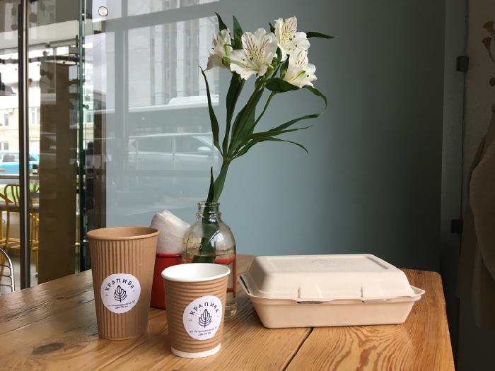 Стаканы для напитков с собой мы используем из биоразлагаемого материала. Мы нашли поставщика, который заказывает их из-за рубежа и привозит нам.