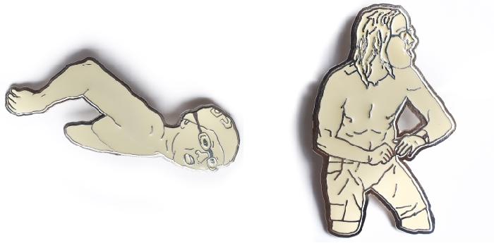На брошах изображены люди во время купания. В воде неожиданно возникают фрагменты фигур, частей тела, они начинают жить своей жизнью, странным образом преображаясь. Наблюдения художников за купальщиками перешли в графические изображения, а затем — в материал, белую бязь с ватином на подкладке из чёрной ткани, прошитую толстой нитью.