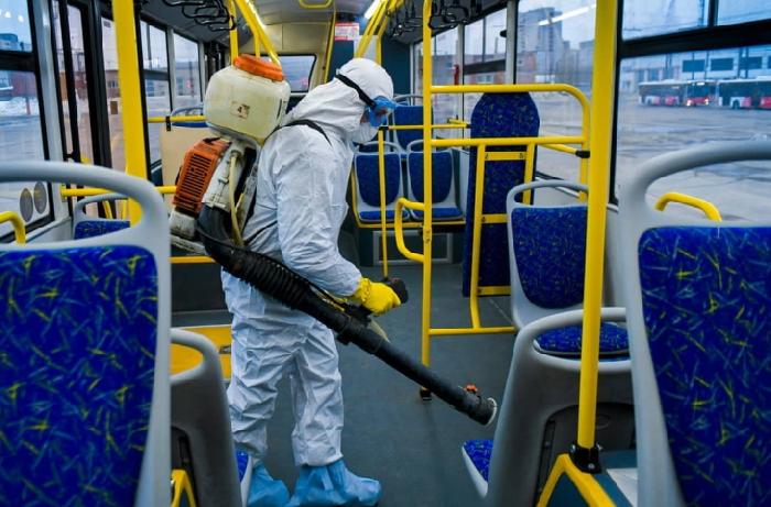 Для обработки транспорта используются сертифицированные средства, дезинфекция проходит по вечерам в кабине водителя и в салоне. После такой обработки вирусов на поверхностях не остаётся.