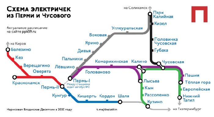 Московский дизайнер Владислав Десяткин решил создать собственную схему для удобства пассажиров «Пермской пригородной компании». Такая мысль пришла дизайнеру, когда он приехал работать в Пермский край, - сообщает пермское отделение «Городских проектов».