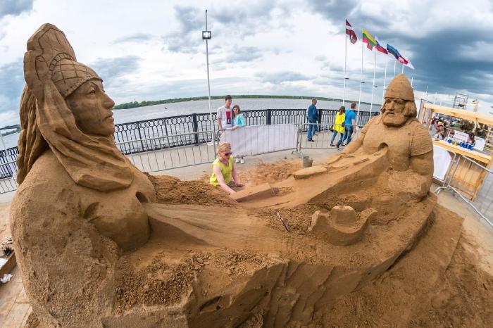 Сегодня на набережной началось строительство скульптур из сена и песка. Фестиваль современной пластики «Сезон искусства» будет проходить в течение предстоящей недели, семь скульптур будут представлены зрителям в пятницу, 28 июня.