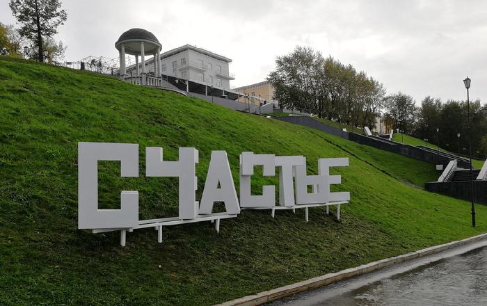 На пермской набережной появился еще один арт-объект, посвященный счастью. Он расположен под ротондой.
