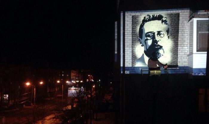 Пермский художник Николай Старков нарисовал на пятиэтажке в Индустриальном районе писателя Антона Чехова. Портрет появился над книжным магазином «Лира» на ул. Леонова, 10.