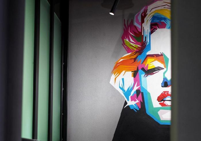В зале создана открытая кухня с угольной коптильней и печью-грилем. Здесь пекут хлеб и готовят мясные деликатесы. Особенность бара — наличие в зале двух витрин для сухого вызревания премиальных отрубов мраморной говядины.