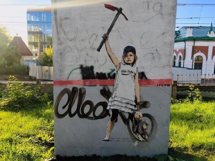 В Перми исчез рисунок художника, известного под псевдонимом Ffchw, располагавшийся на опоре моста над железнодорожными путями около завода Шпагина. Его закрасили.