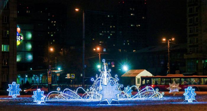 В Перми начались работы по новогоднему украшению города. По планам мэрии, будет установлено более 2 тысяч праздничных конструкций и элементов. Среди них уже знакомые новогодние шары, маски, подарочные коробки, арки, фонтаны, ёлки, снежинки.