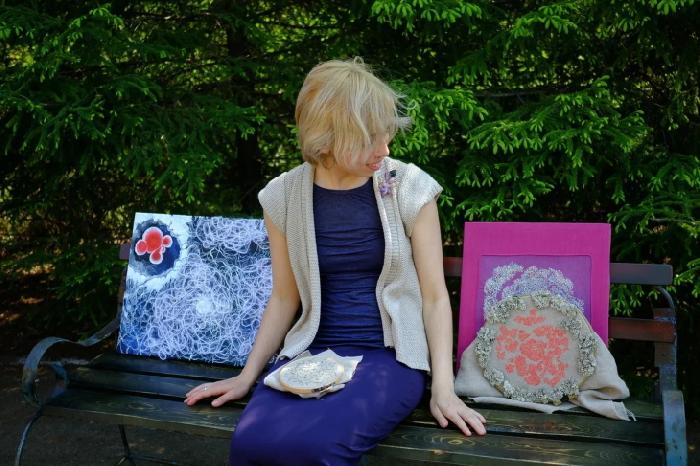«Ведь вышивая лишайники или мох, можно импровизировать: вышивка стихийно расползается по ткани, не зная границ. Так же как и сами представители флоры разрастаются только в направлениях, известных им одним», - говорит автор. Природной тематикой художница занимается уже третий год. Плесень и лишайники она переносит на броши из фетра или ткани. В свободное время Елизавета Стальных проводит мастер-классы по вышивке.