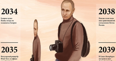 В календаре иллюстратор отразил самые важные исторические вехи правления Путина с 2018 по 2120 год. Дат и месяцев в нём нет потому, что время было отменено в 2067 году. Автор записал в календаре такие события, как переименование города Пскова в Газпром, выдача пенсий криптовалютой и совместная работа Илона Маска и Роскосмоса над колонизацией Марса.