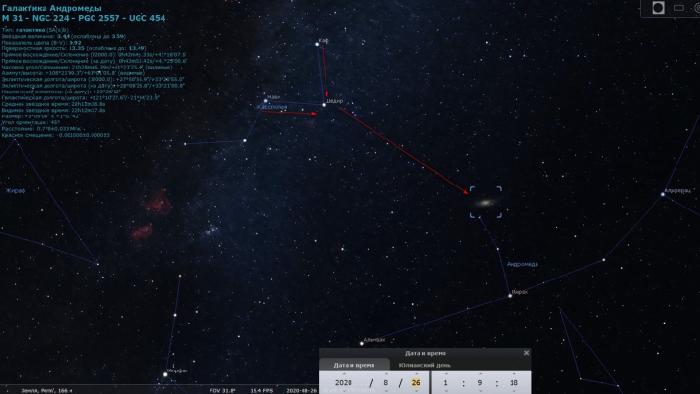 С 20 августа наступает благоприятное время для наблюдений за галактикой Андромеда. Это спиральная, крупнейшая галактика в «Местной группе» и ближайшая к Млечному Пути.
