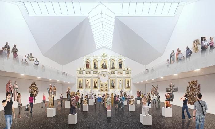 Площадь выставочных площадей вырастет в несколько раз. Для зала, где будет располагаться знаменитая коллекция скульптуры, предусмотрено оформление, напоминающее церковное пространство.