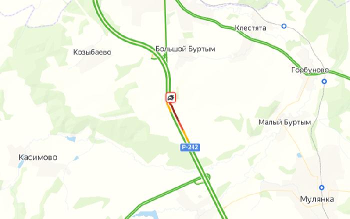 Полоса по направлению в Пермь полностью заблокирована. Сейчас там сформировалась большая пробка.