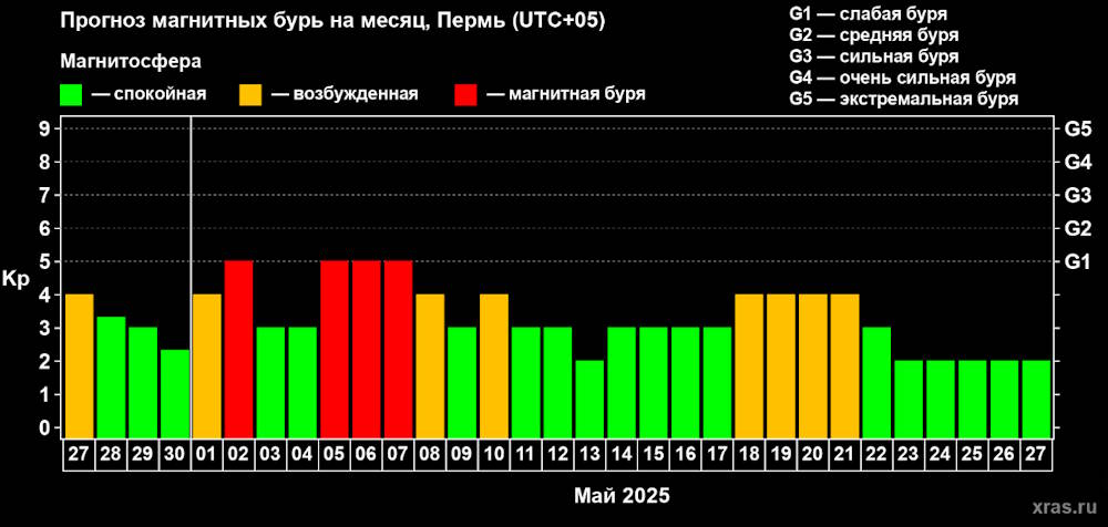 Сервисы метеопрогнозов предупредили пермяков о возможных экстремально сильных магнитных бурях в начале мая. Их пик придётся на период с 5 по 7 мая включительно.