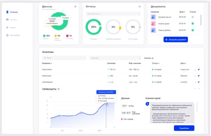 Lifetime+ помогает сдавать анализы в партнерских лабораториях, отслеживать динамику состояния здоровья, настроенный медиками бот подскажет к какому врачу обратиться, если результаты анализов отклонились от нормы.