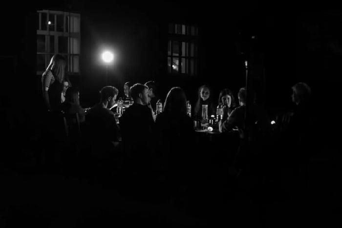 «Мы сделали спектакль, где есть две категории: хозяин и гость... 8 хозяев и 8 гостей собираются за одним столом. Хозяева на этот стол ставят какое-то свое любимое блюдо и приносят самую дорогую для него фотографию... И задача хозяев – разговорить гостей», -