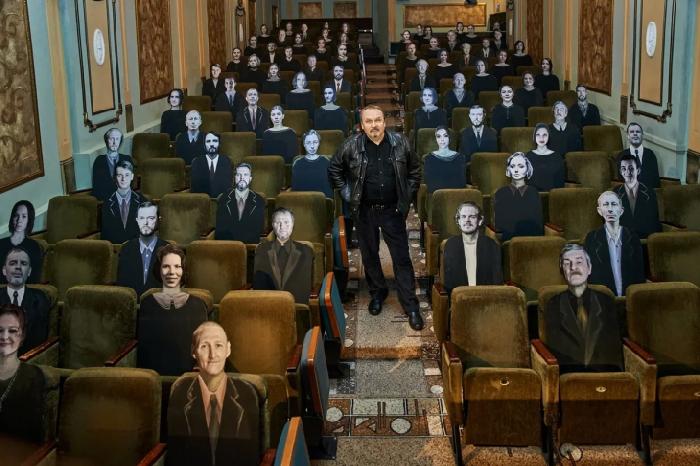 Пермский театр «У Моста» решил по-своему выполнить требования Роспотребнадзора о соблюдении дистанции между зрителями. В сентябре залы будут заполняться на 50% в «шахматном порядке», но пустых мест не будет. На свободных креслах размещены фигуры актеров театра, которые и составят компанию зрителям во время просмотра спектаклей.