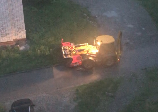 В Березниках недовольный муж трактором раздавил иномарку жены