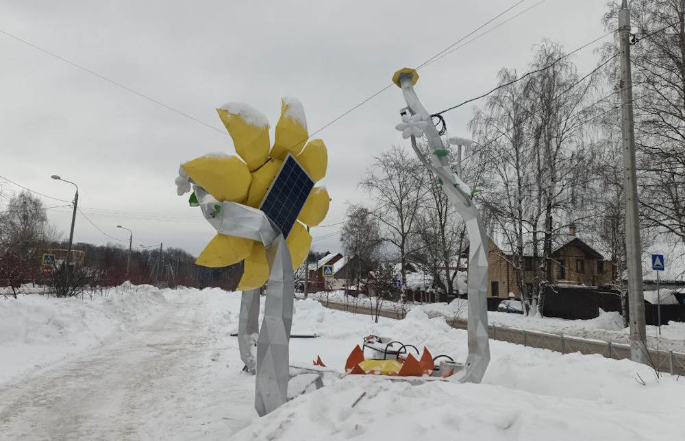 Компания до конца 2024 года оплачивала электроэнергию, которая поддерживала функционал объекта в зимний период, когда солнечной энергии не хватало для его полноценной работы. Но в новогодние праздники из-за нарушения целостности крепления, сильной ветровой нагрузки и обледенения согнулись опоры двух оставшихся цветков.