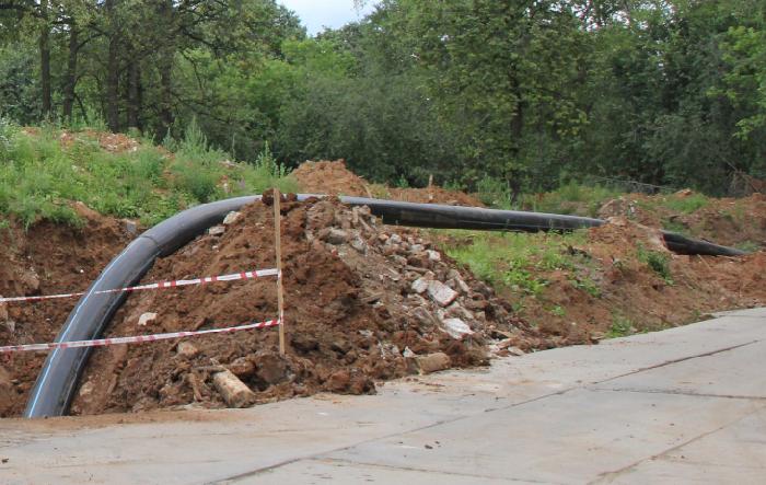 Сейчас проводится опрессовка нового водовода (испытание под давлением), после чего сделают переврезки в действующую сеть и запустят обновленный трубопровод в работу.