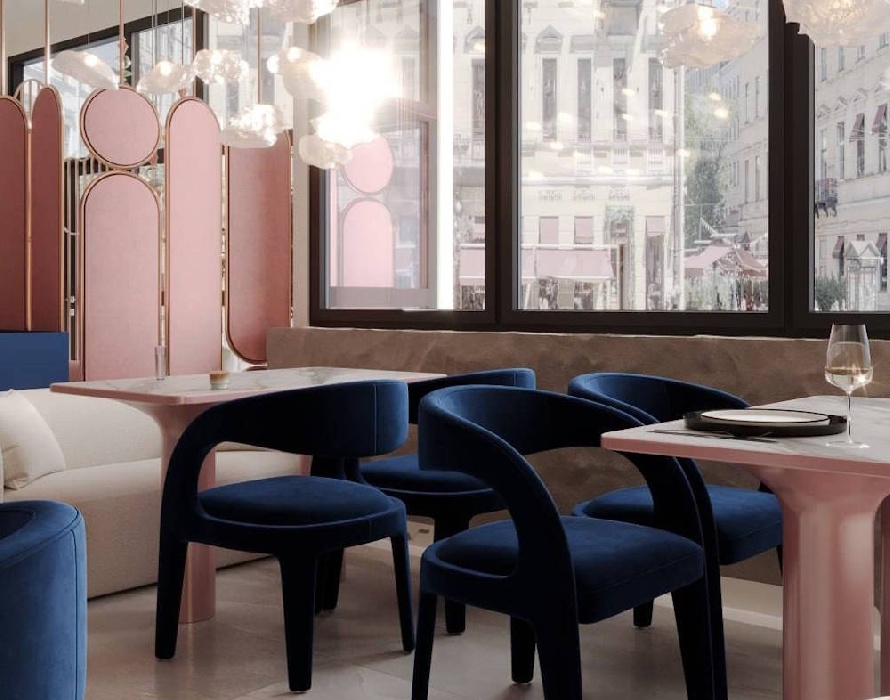 Как сообщает команда заведения, при создании интерьеров дизайнеры вдохновлялись закатами над Камой. Используются пастельные, глубокие фиолетово-синие тона; тёплые огненные блики. Над оформлением ресторана работало бюро Kochenevskikh Design.
