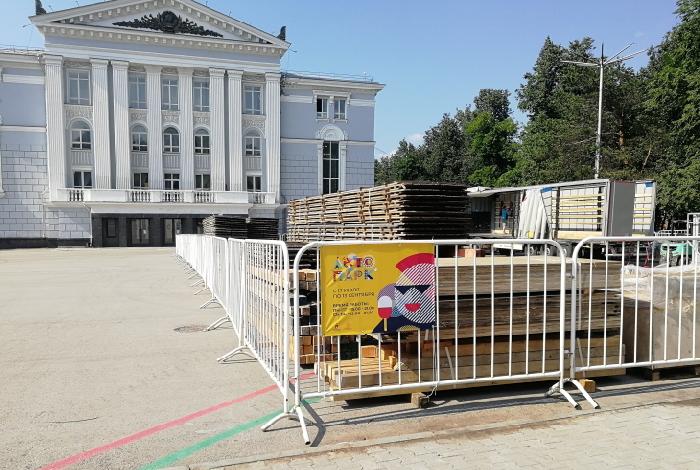 Сегодня в сквере перед оперным театром развернулись работы по строительству павильонов «Лето Парка». Обычно он располагается на эспланаде, но в этом году в среднем квартале начались работы по реконструкции.