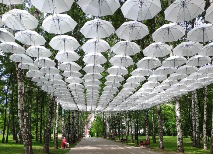 В Перми в саду им.Миндовского появилась необычная инсталляция. 200 белых зонтов украсили Сад и уже стали популярным местом для селфи посетителей. Арт-объект в Индустриальном районе установила дирекция парков и скверов «ПермьПарк» ко Дню города.