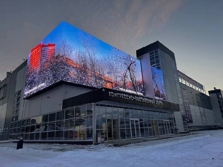 В Перми установили первый 3D-медиафасад в городе. Он расположен на здании КВЦ «Пермь Экспо». Экран имеет размеры 31,6 м на 8,6 м и весит почти 7,5 тонн. Сейчас на медиафасаде можно увидеть видеоролики о Перми и Пермском крае, а также анонсы мероприятий и т.д.