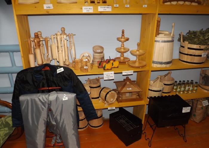 Ассортимент товаров в магазине довольно широкий – от швейной продукции, кухонной утвари, аксессуаров для бани, мангалов, сувенирных изделий, мебели из натурального сырья по доступным ценам.