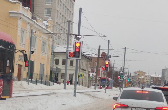 Дополнительно светофоры продублировали, поскольку из третьей и четвертой полосы на улице Петропавловская основной светофор справа трудно увидеть.