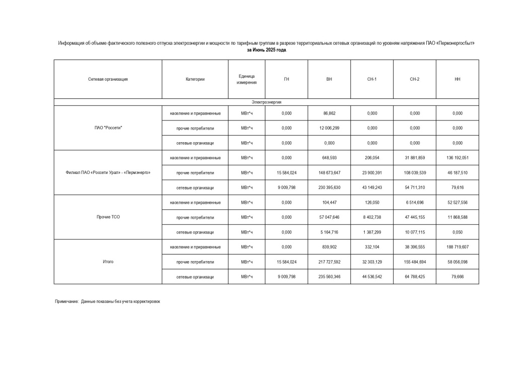 Информация об объеме полезного отпуска по ТСО за июнь 2025 года -