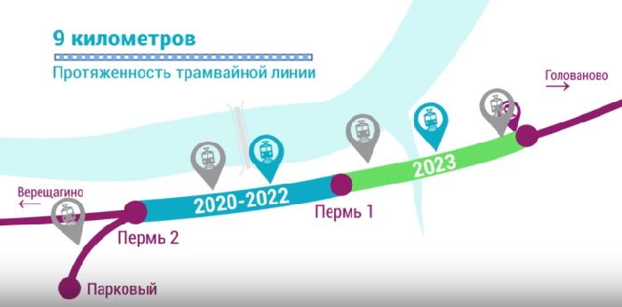 В 2022 году на участке Пермь-I-Пермь-II планируется организовать движение скоростного трамвая, к 2023 году продлить его до Мотовилихи.